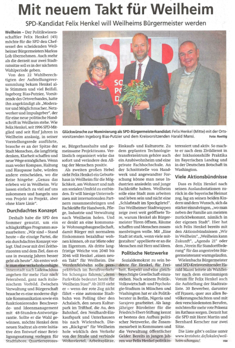 Oder, wie es das zentrale Motto der SPD Weilheim ausdrückt: Weilheim braucht dich.